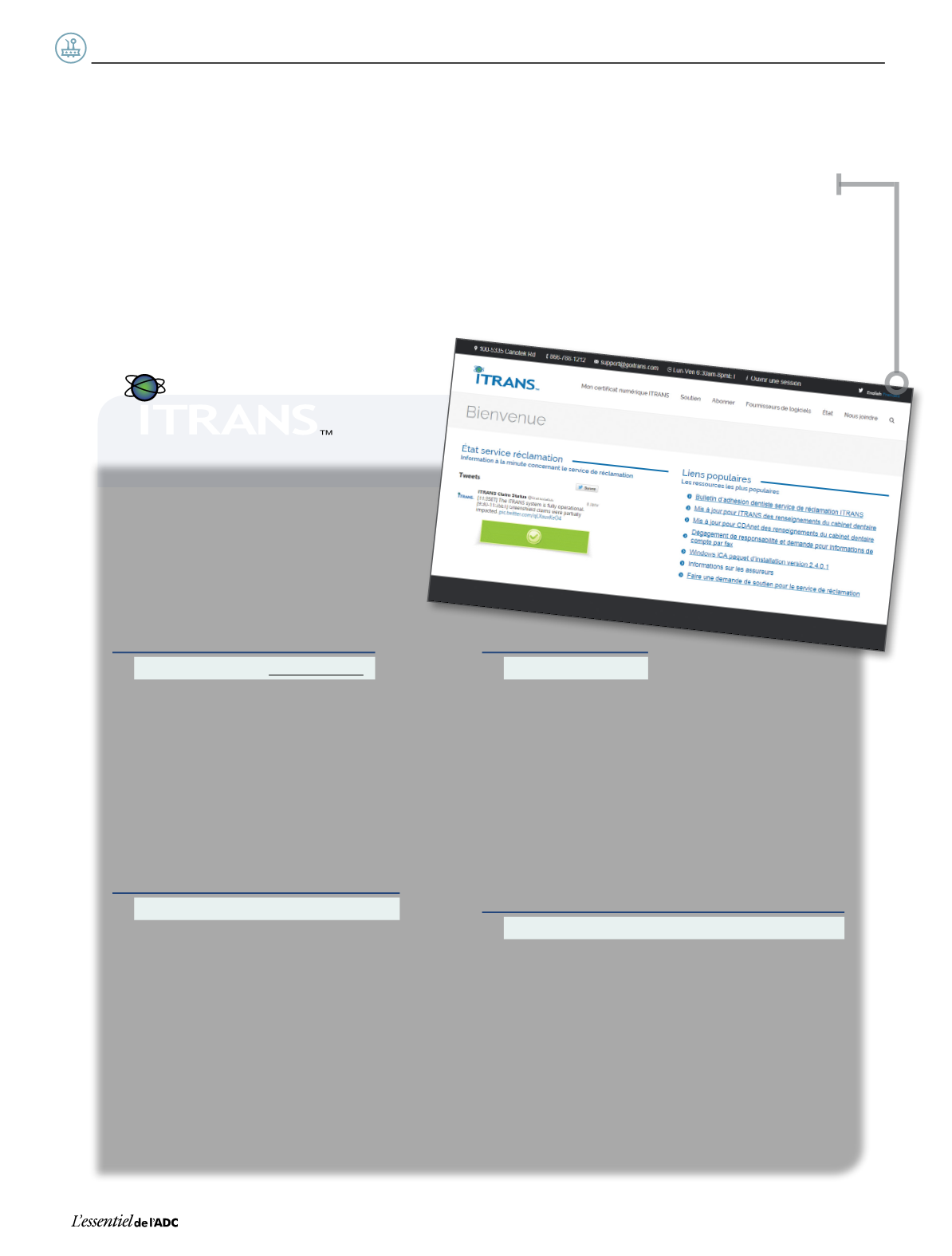 Undentistepeut choisir le service ITRANS fourni par l’ADC