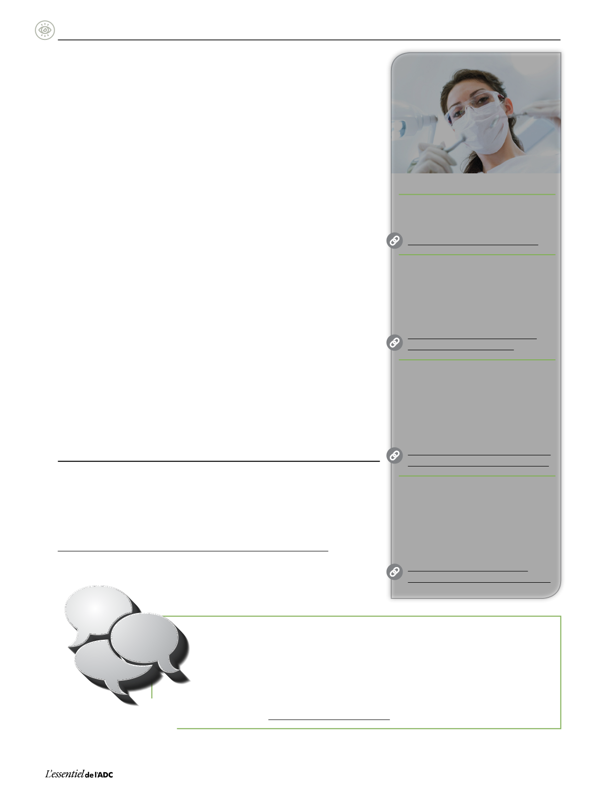 1.KoneruA,SigalMJ.L’accèsauxsoinsdentaireschez lespersonnesayantunedéficiencedéveloppementaleenOntario.JCanDentAssoc.