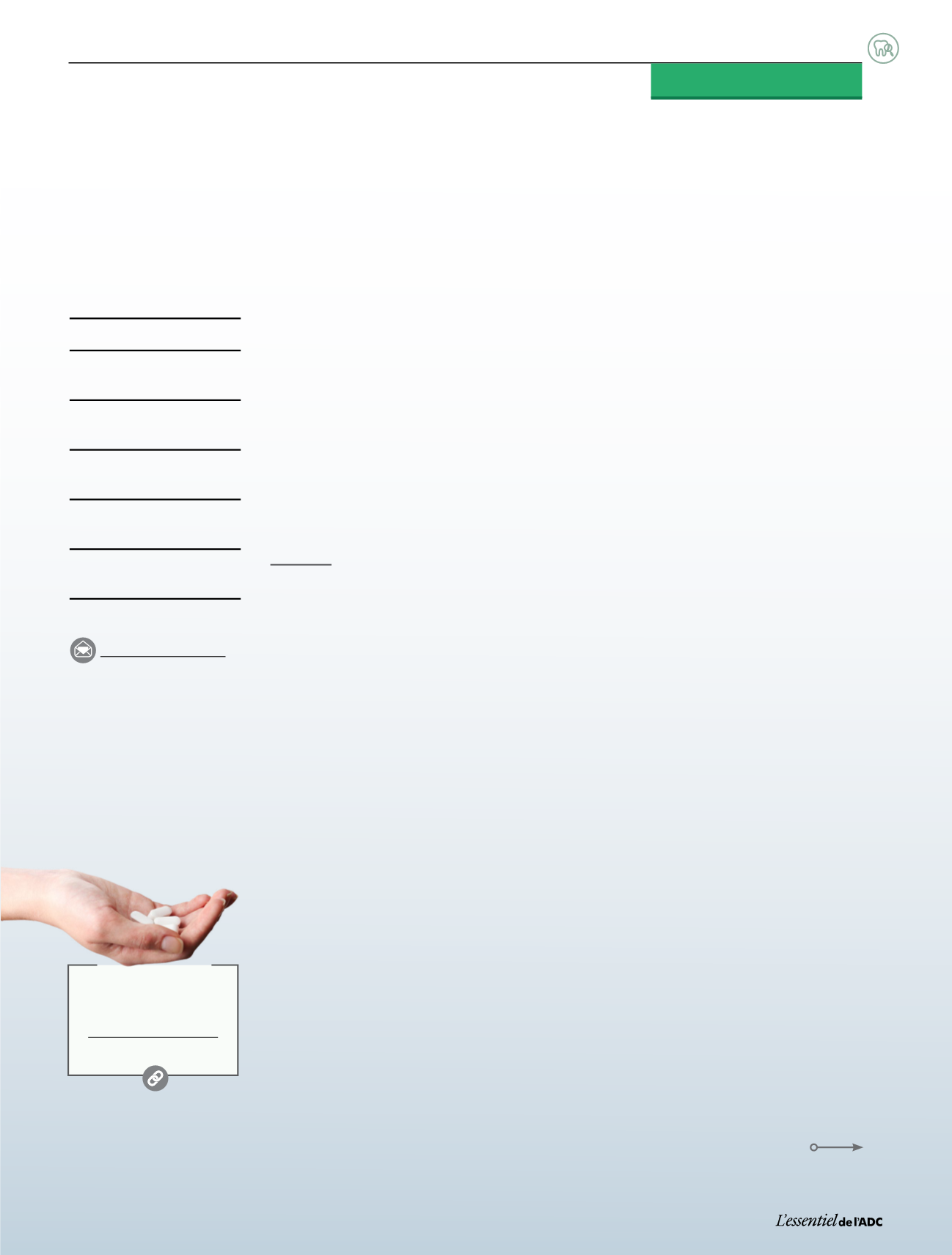 dentsmédicauxetdéterminer les répercussionspossibles sur laprestationdes soinsdentaires. Il fautpar